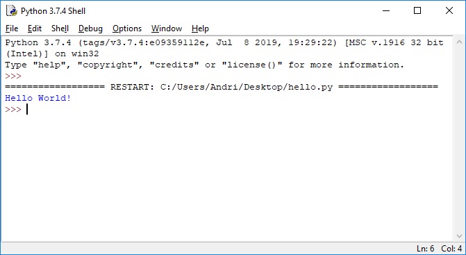 Jika tidak ada error, maka akan ditampilkan pada Python Shell seperti tampilan diatas. Selamat anda berhasil menjalankan Python pada komputer anda!