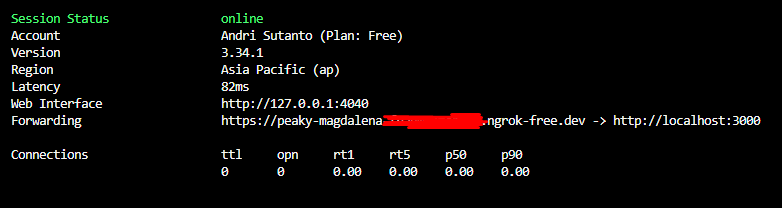- After running command above, it will show forwarding address. Ngrok will automatically assign a sub domain for you. You can now testing using that URL.