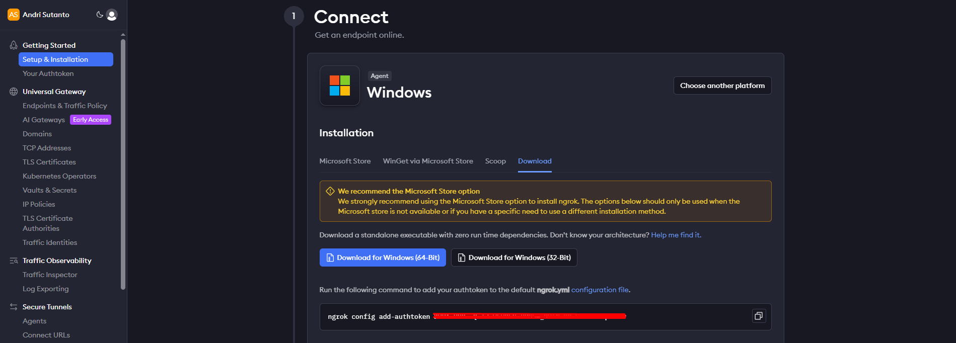 - Download Ngrok client. Since I use Windows, then I download the .exe files. They also provide option for another OS, such as Mac or Linux OS.